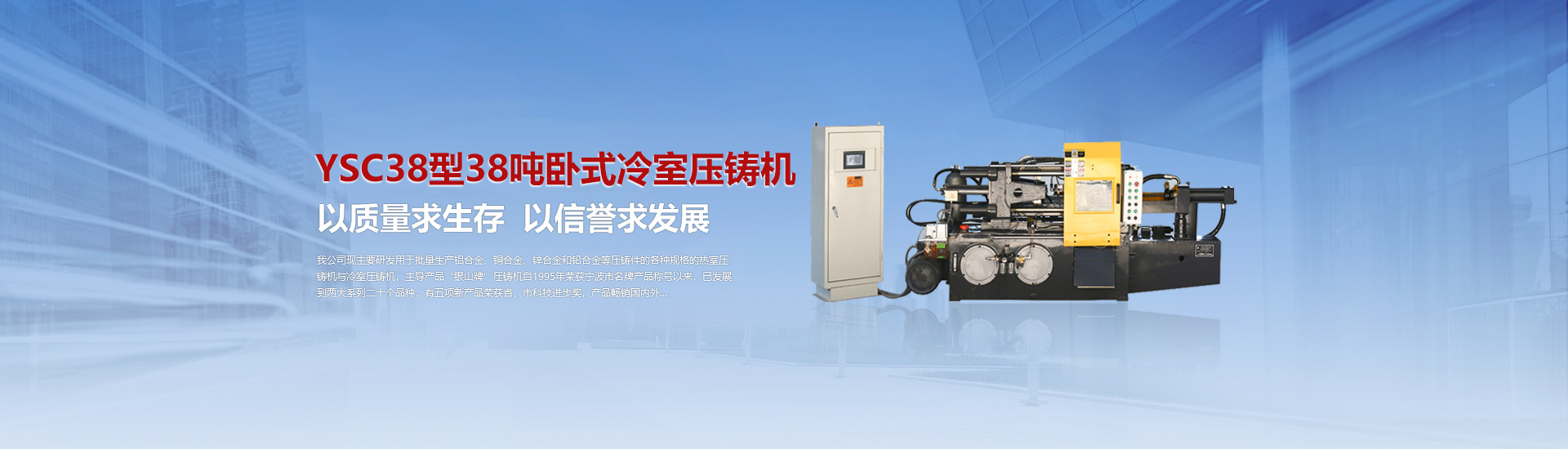 我司現(xiàn)主要研發(fā)用于批量加工生產(chǎn)鋁合金、銅合金、鋅合金和鉛合金等壓鑄件的各種型號(hào)規(guī)格的熱室/冷室壓鑄機(jī),主導(dǎo)產(chǎn)品“銀山牌”壓鑄機(jī)自1995年榮獲寧波市名牌產(chǎn)品稱(chēng)號(hào)以來(lái),已發(fā)展到兩大系列二十個(gè)品種,有五項(xiàng)產(chǎn)品曾榮獲省、市科技進(jìn)步獎(jiǎng),產(chǎn)品暢銷(xiāo)國(guó)內(nèi)外。歷年來(lái)向用戶(hù)提供了8000余臺(tái)設(shè)備,為中國(guó)的壓鑄工業(yè)發(fā)展作出了重要的貢獻(xiàn),企業(yè)獲得了很高的信譽(yù)度。